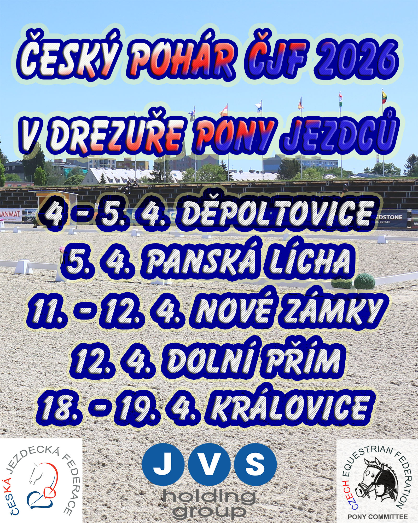 V Děpoltovicích 4. - 5. dubna 2026 a v Brně na Panské líše 5. dubna 2026 se rozjedou kvalifikační kola ČP ČJF v drezuře jezdců na pony 2026, který je i letos vypsán ve čtyřech kategoriích.